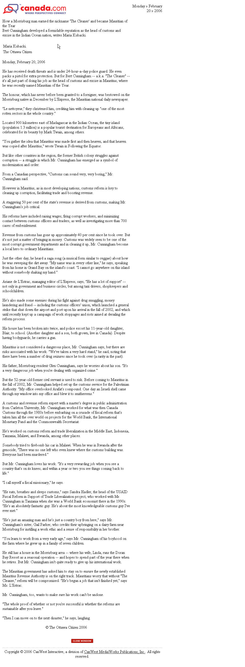 Bert (Uncle Glen's Son) was honored as Mauritius "Man of the Year" for his work with their customs services.