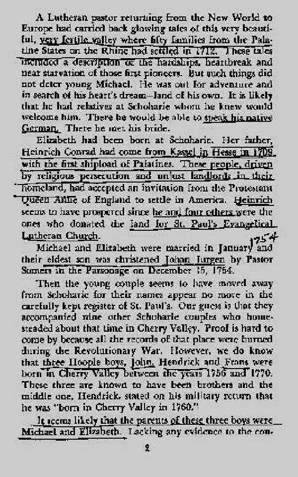 Mary Cunningham (nee Gallinger), Don's Grandmother, was a direct descendant of German Henry Hoople. Michael Hoople migrated from Germany in the early 1700's and settled in upstate New York. During the Revolution, some Hooples remained Loyalists and fled to Canada, while others fought as "rebels". Life on the frontier was rough!