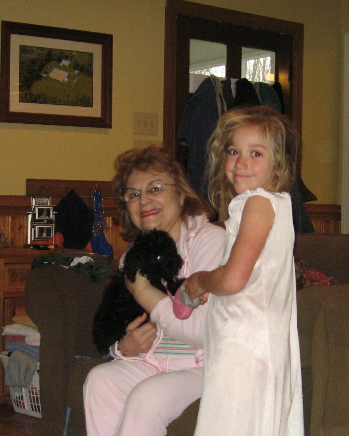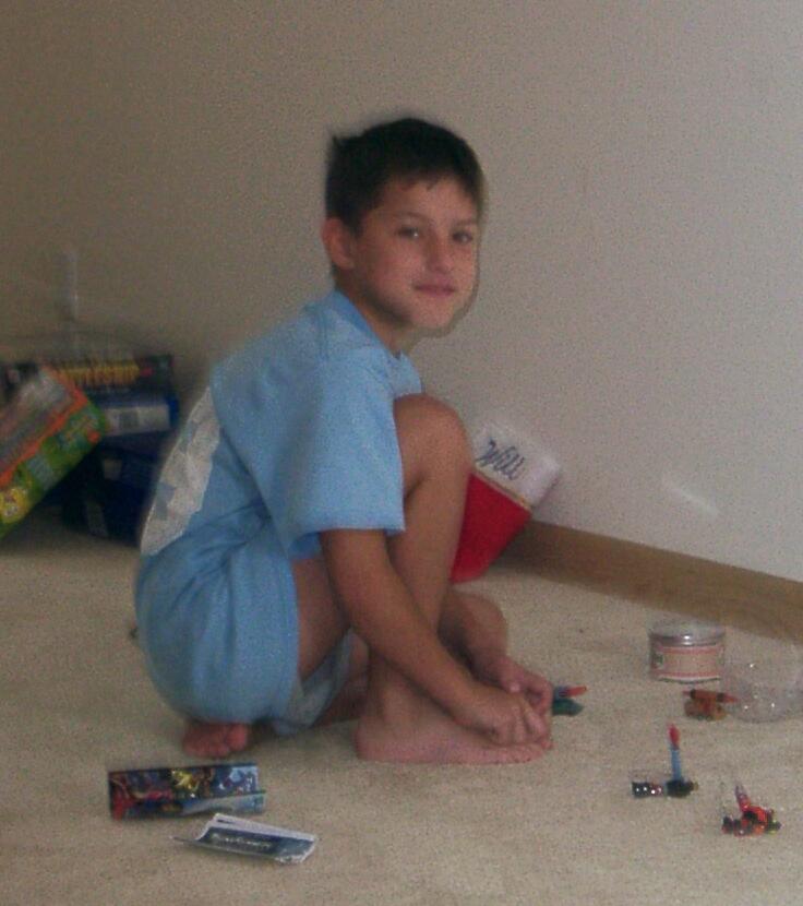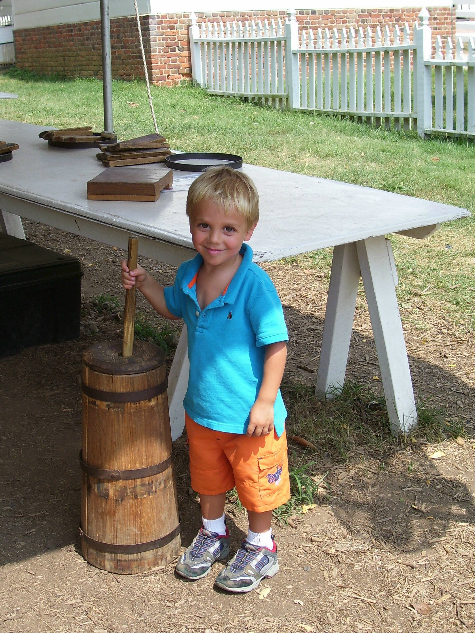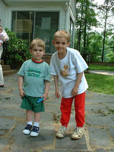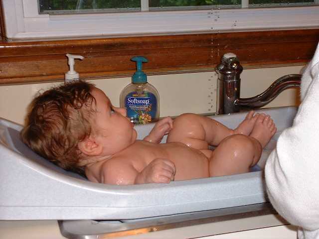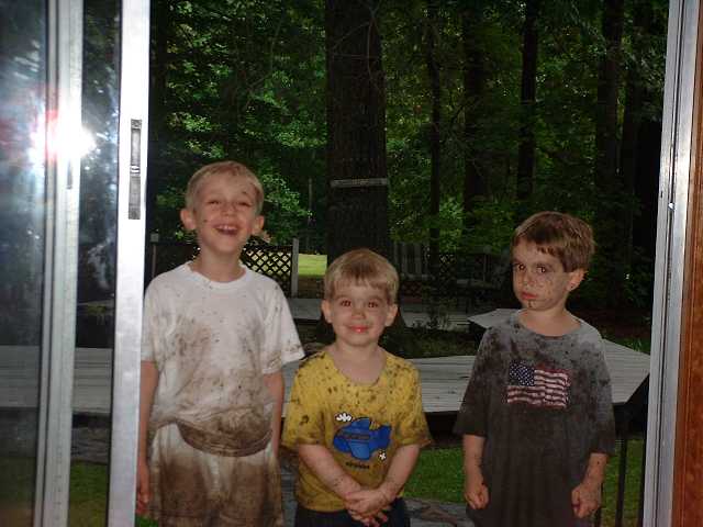 G-Mom & the evil chef cook up "family portrait" pancakes. Boys & mud go well together! Meg "at bath". She's a keeper.