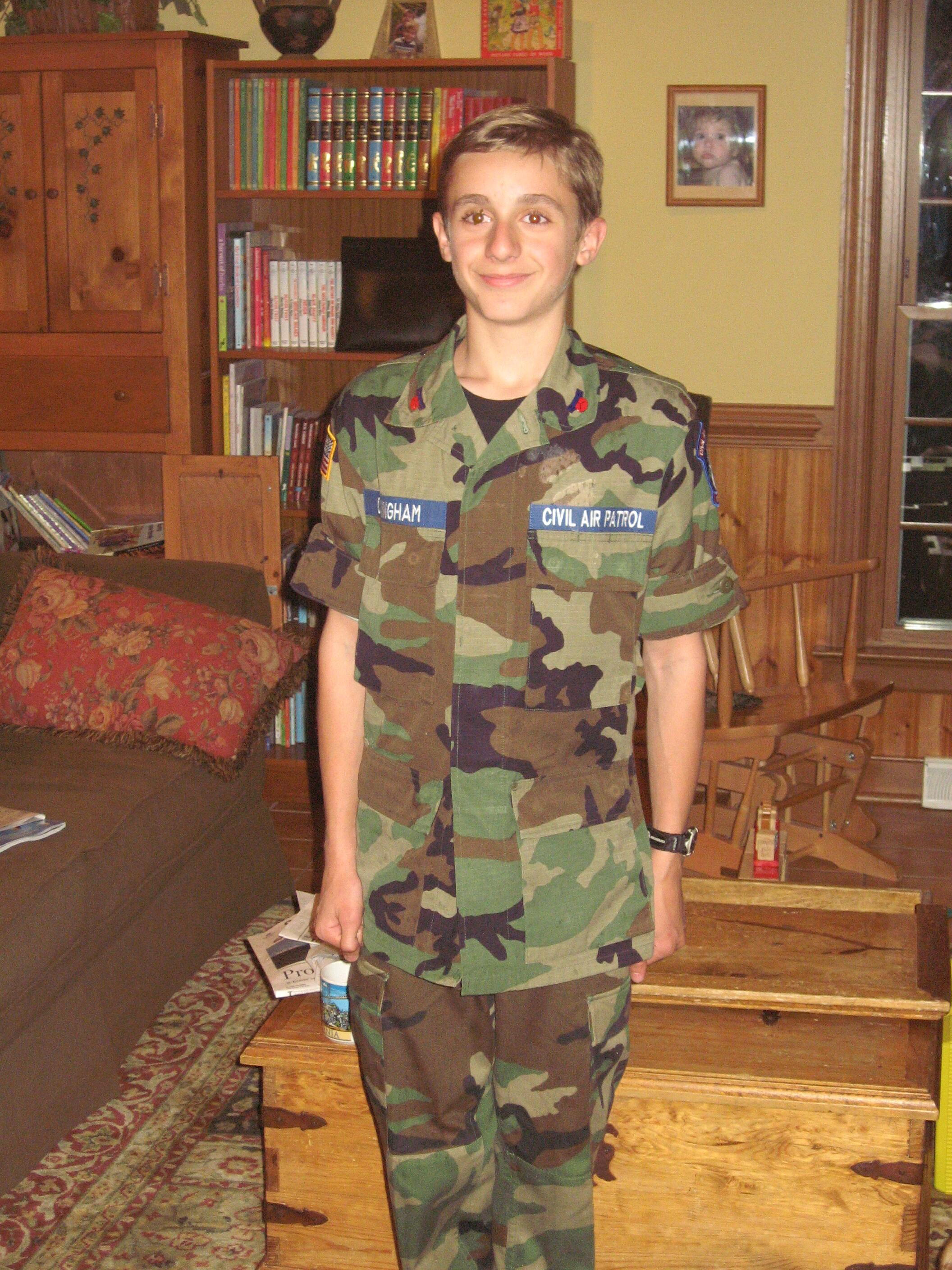 Josh in his CAP uniform. GrandMom in the kitchen.