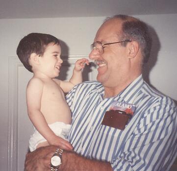 Sean & Ryan at the zoo. Sean says, "Will my nose be that big when I grow up, Grandpa?"